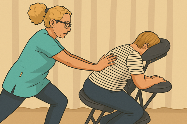 L’Amma assis, massage habillé sur chaise ergonomique, se concentre sur le dos, la nuque, les épaules, les bras et la tête. Rapide et efficace, il est idéal en entreprise ou lors d’événements pour favoriser relaxation, récupération et concentration.